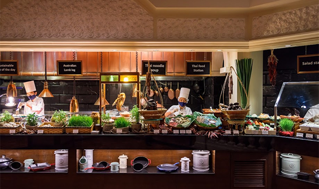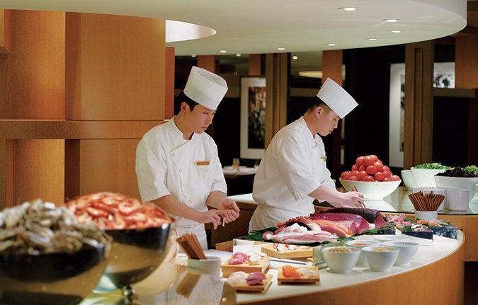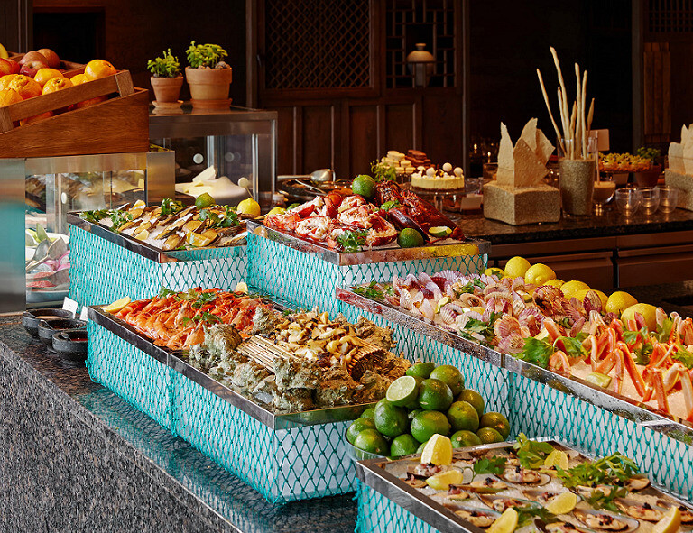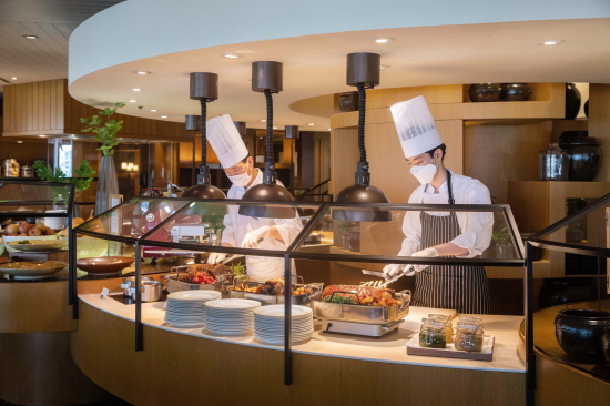 그랜드 하얏트 서울 더 테라스의 메뉴는 계절마다 변경되어 항상 신선한 재료로 만든 요리를 맛볼 수 있습니다. 한식, 중식, 일식, 양식 등 다국적 요리가 준비되어 있어 모든 연령대와 취향을 만족시킵니다. 특히 라이브 쿠킹 스테이션에서는 셰프가 직접 요리하는 모습을 볼 수 있으며, 갓 조리된 따뜻한 음식을 즐길 수 있습니다.